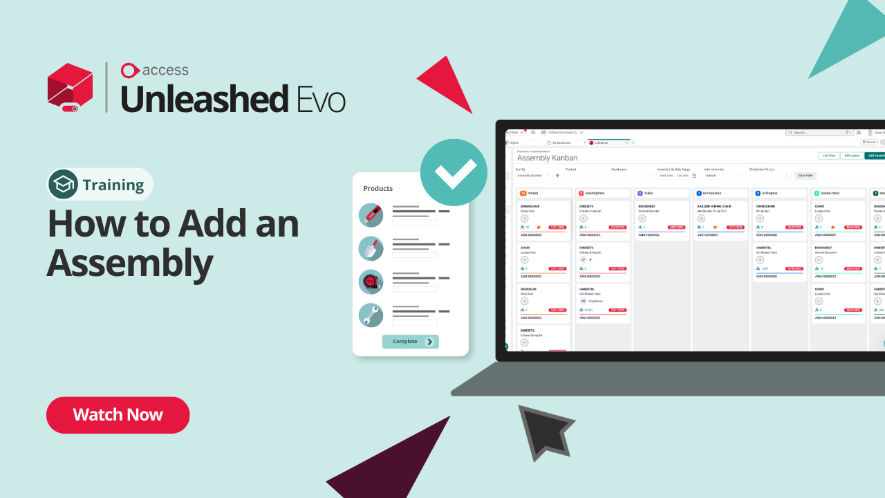 Learn how to create assemblies in Unleashed to manage production efficiently. This tutorial covers adding assemblies, using Bills of Materials, allocating batch or serial components, and including supplier costs for accurate landed pricing. Perfect for businesses managing manufacturing and stock control.