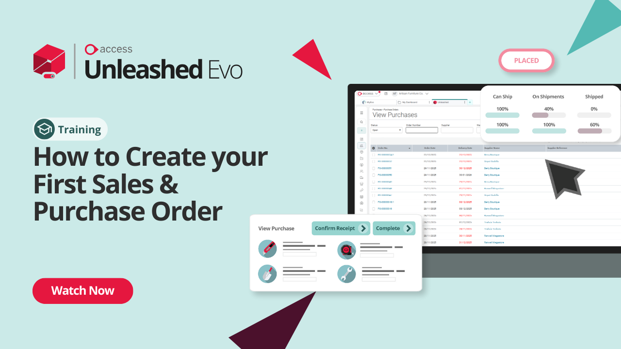 Learn how to create your first Sales Order and Purchase Order in Unleashed, step by step. This tutorial covers adding customers and suppliers, allocating stock, creating shipments, invoicing, receipting goods, and managing costs for accurate inventory and smooth operations.