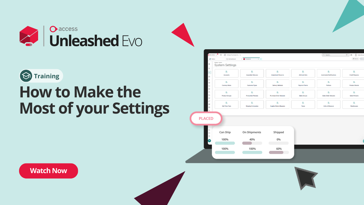 Discover 7 key settings in Unleashed to optimize efficiency and accuracy. This tutorial covers company settings, user roles, email templates, automated notifications, adjustment reasons, document designer, and integrations—helping you streamline workflows and maintain compliance
