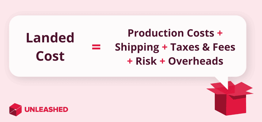 Manufacturing Costs + Shipping + Taxes, Duties & Customs Fees + Risk + Overheads = Landed Cost