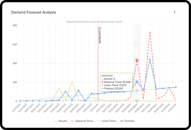 This combination of trend and seasonal forecasting reflects two core demand planning methods: time-series analysis and seasonal modelling. Together, they form a robust demand forecasting model that helps businesses anticipate fluctuations and plan accordingly.