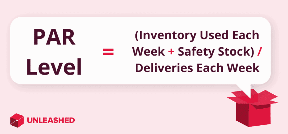 - PAR level = (amount of inventory used each week + safety stock) ÷ (number of deliveries each week)