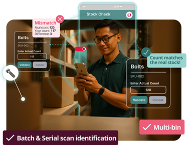 Proven to dramatically cut error rates, Warehouse Management delivers instant scan verification at the SKU, batch & serial number level, to ensure you pick or put away exactly the right items in the right location. And with a simple interface and easy onboarding staff learn fast – and stay productive